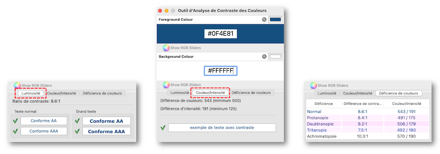 These two elements propose to the greatest number a very comfortable reading that the contrast unfortunately can't assure on its own (see the end of this section to discover the proper tool for automatic calculations).