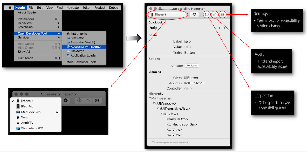This video available on the official Apple website (session 407) aims at defining and using the Accessibility Inspector tool of Xcode, based on good practice implementation.