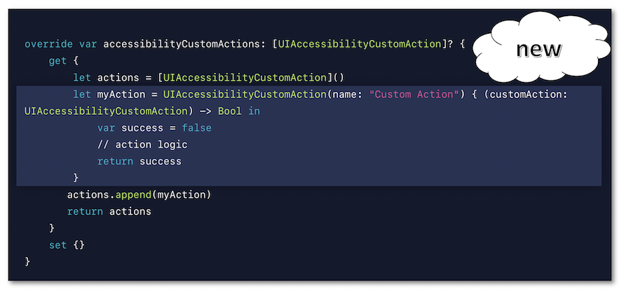 The purpose of the custom actions with VoiceOver is clearly explained which helps understand why and in which contexts this functionality must be implemented to significantly improve the user experience.