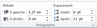 • Menu Mise en page > Paragraphe > Retrait ou Espacement ou Clic droit : « Paragraphe… »