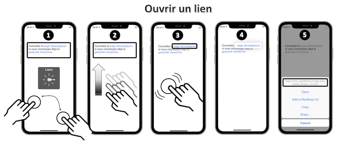 Ces nouveaux gestes de base ont donc fortement impacté les manipulations VoiceOver dont les principales sont fournies ci-dessous :