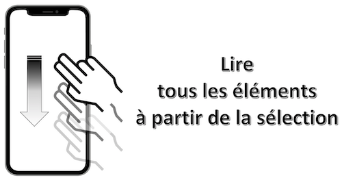 Mouvement : balayage avec 3 doigts du haut vers le bas n'importe où sur l'écran.