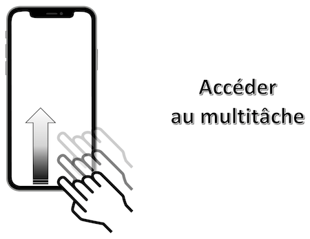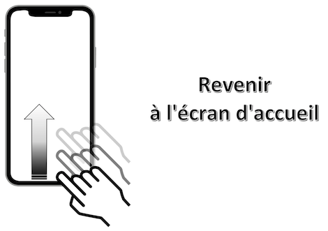 Mouvement : balayage avec 3 doigts du bas vers le haut n'importe où sur l'écran.