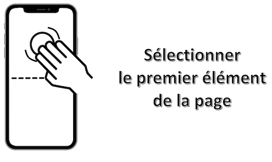 Mouvement : balayage avec 1 doigt à partir du haut de l'écran jusqu'à sentir l'émission d'une simple vibration (environ au premier quart supérieur de l'écran).