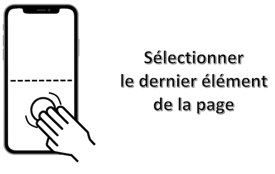 Mouvement : double tap avec 1 doigt en maintenant la pression (iOS 12) ou triple tap avec un doigt (iOS 13) n'importe où sur l'écran.