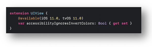 Si certains éléments graphiques ne doivent pas être impactés par cette option, il faut le préciser via la propriété accessibilityIgnoresInvertColors.